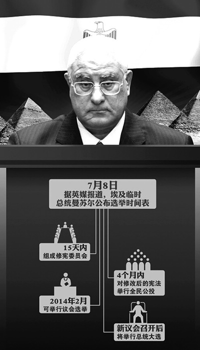 当地时间7月8日晚,埃及临时总统曼苏尔公布了选举时间表。 □图片来源 CFP |
