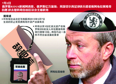 俄罗斯的“反腐拳”也“打”到了其他人。英国《每日电讯》报7月2日报道,切尔西足球俱乐部老板、俄罗斯亿万富翁阿布拉莫维奇已辞去俄罗斯楚科奇自治区议员、议会主席的职务。