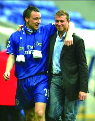 阿布拉莫维奇(右)和切尔西足球队队长特里在一起。 |