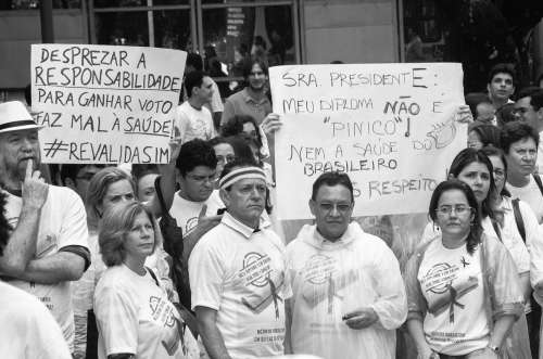 7月3日,巴西第五大城市累西腓,当地医生在总统府外集会,抗议政府雇佣外国医生以弥补偏远地区专业人员缺乏的现象。□图片来源 CFP |