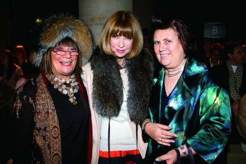 时尚评论的领跑者们聚首秀场(由左至右依次为:希拉里·亚历山大,安娜·温图尔,苏熙·曼奇斯) |