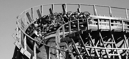 刺激的木制过山车引得游客尖叫连连 |