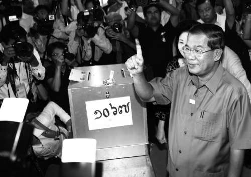 7月28日,洪森在官邸附近的投票站投票。图片来源 CFP |