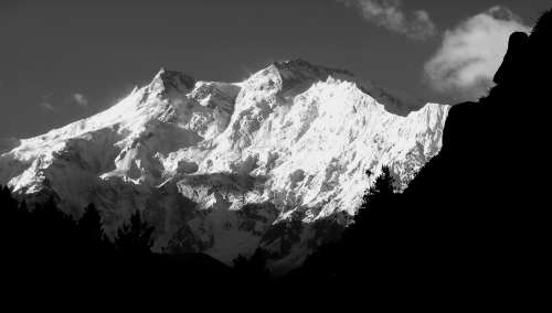 太阳落山很久了。第一次参与探险的巴基斯坦登山者谢尔·可汗窝在睡袋里,已经打了一个小时盹儿。帐篷外,南迦帕尔巴特峰(位于喜马拉雅山脉西段巴基斯坦控制下的克什米尔地区)高耸的雪丘在深沉的夜色里格外苍白。