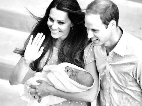 当日,英国圣玛丽医院门口被媒体围的水泄不通。在民众兴奋的欢呼声中,威廉王子和凯特王妃怀抱出生才一天的儿子,现身伦敦圣玛丽医院的门前,接受民众祝福。