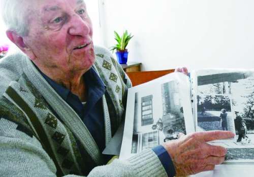 2005年,米舍指着希特勒上世纪40年代拍摄的照片 |