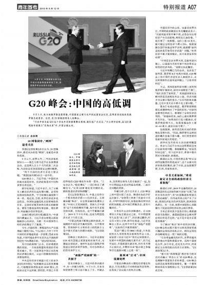 英国《全球政策》杂志认为,20国集团中,最受关注的是“两国”,也就是中国和美国。