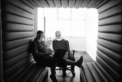 萨马基(右)和贾希姆在“绿洲500”公司位于安曼的办公室。 |