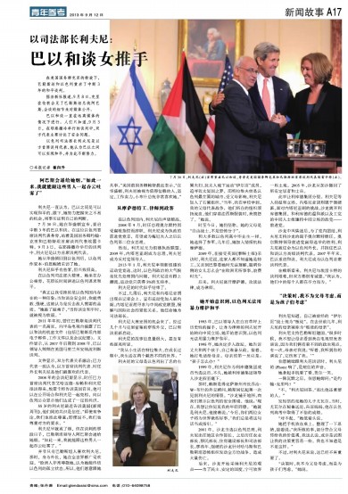 并非只有巴勒斯坦人喜欢利夫尼。那时,身为外长,她在全世界都广受欢迎。“欧洲人非常尊敬她,认为她能终结以色列的孤立状态。所以,他们愿意跟她共事。”美国前国务卿赖斯最近表示,“在华盛顿,利夫尼被视为值得信赖的人,坚定,工作卖力。小布什总统非常喜欢她。”