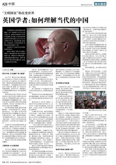 在这个英国人眼中,中国成为超级大国后不会这样做,中国领导人对于统治世界的兴趣小得多,更关心维护国内政权。而在中国的新领导人执政纲领中,重点也是国内问题而非国际问题。