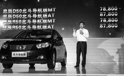 此次,启辰品牌第10万台整车——D50在东风日产郑州工厂驶下生产线,标志着启辰北斗导航版车型正式上市。“启辰是首个以前装方式搭载北斗导航系统的汽车品牌,这将正式开启北斗卫星导航系统在民用乘用车领域的新征程。”任勇表示。
