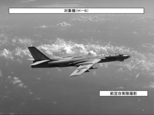 日本航空自卫队拍摄到的中国轰-6飞机 |