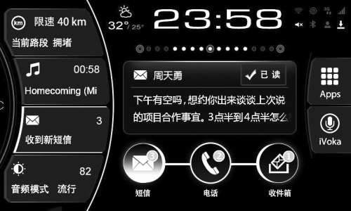 智能手机确实能够满足人们在娱乐和生活方面的基本需求,但当手机的一些功能嫁接到汽车上时,还是会遇到一些无法回避的问题,主要是基于汽车作为移动环境的特殊性。比如,沿着智能手机设定好的导航路线驾车行驶,突然有重要电话打进来,接还是不接?接,设好的导航将停止,需要重新开启。且不说因为导航停止,或许会错过高速出口带来不便,更重要的是,操作手机难免会给驾车带来安全隐患。