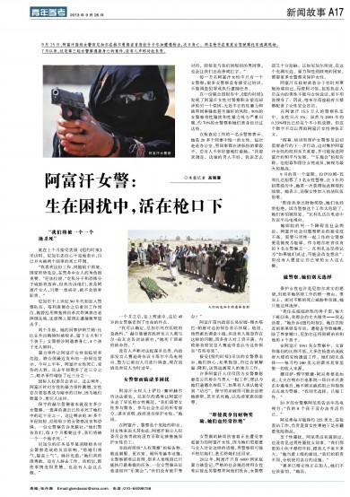 “我喜欢这份工作。同胞陷于困境、国家形势危急,在警务中女人的角色很重要。”尼加拉说,“走私分子和恐怖分子威胁我放弃,但我告诉他们,我是阿富汗女人,只要一息尚存,就不会放弃职责。”