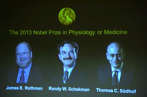 三名获奖者分别是62岁和64岁的美国科学家詹姆斯·罗思曼和兰迪·谢克曼、以及57岁的德国科学家托马斯·祖德霍夫,他们发现了细胞内的主要运输系统——囊泡运输的调节机制。囊泡运输调节机制十分敏感,稍有紊乱便能造成严重疾病甚至死亡。“罗思曼、谢克曼和祖德霍夫通过他们的发现,揭开了细胞内货物运输和交付的精确控制系统的面纱,”瑞典卡罗琳斯卡学院诺贝尔大会在颁发该奖项的声明中说道。今年诺贝尔医学奖的奖金为800万瑞典克朗(合120万美元)。诺贝尔委员会称,上述研究将有助于让人们了解免疫缺陷、自闭症等脑部疾病。医学奖是每年最早揭晓的诺贝尔奖项。