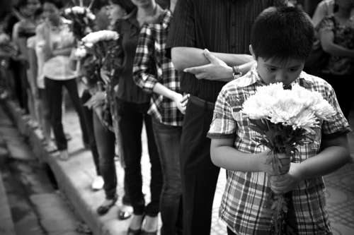 10月6日,越南河内的民众携带鲜花,自发前往悼念武元甲。□本版图片来源 CFP |