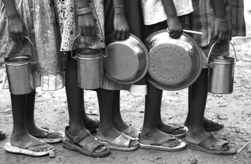 印度小学生排队领取午餐 |