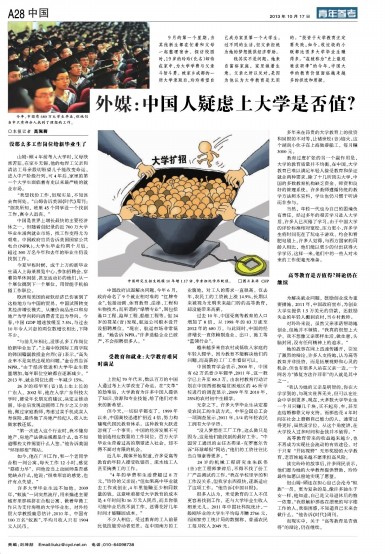外媒:中国人疑虑上大学是否值?