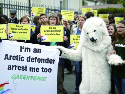 9月18日,绿色和平组织的部分成员在北冰洋伯朝拉海上抗议俄罗斯在此开采石油,因此被控犯有海盗罪。