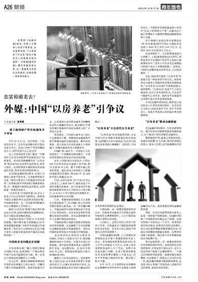 在英国《金融时报》看来,中国人无需担心政府不管养老,反向抵押贷款不过是“面向少数老年人的高端市场化选择”。但香港《南华早报》援引观察家观点称,这一措施要为传统社会所接受,还面临着一场艰苦的战斗。
