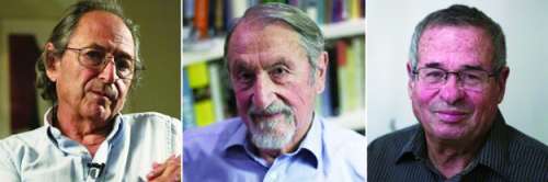 3位诺贝尔化学奖得主:左起分别为莱维特、卡普拉斯与瓦谢尔。 |