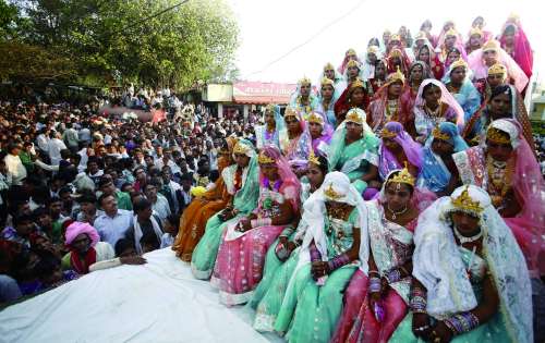5月13日,印度博帕尔,200多对新人在佛陀满月节举行集体婚礼。图片来源 CFP |