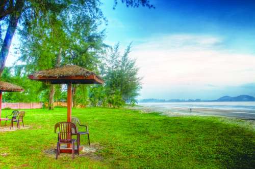 离开瓜拉丁加奴,通向泰国边境的公路几乎空无一人。除了狂热的潜水爱好者,少有游客乐意跑到如此偏僻的所在,而目前还不是潜水旺季。早餐依旧在路边小店解决,主食是椰浆饭,配上辣椒干炸凤尾鱼、花生和煮鸡蛋。我问主人哪里有住宿的地方,对方指了指一条崎岖不平的土路,夹在海滩与一道浅浅的溪水之间。
