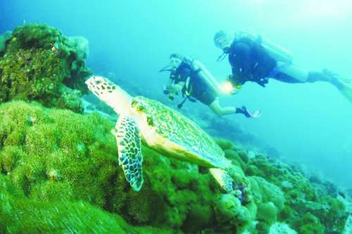 与海龟一同潜泳