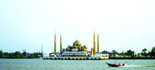 从丁加奴河上远眺水晶清真寺
