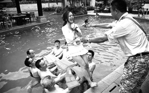 今天的池边游戏只是活跃气氛的活动,它是在一个豪华度假村举办的周末富豪相亲会的一部分。现场的24位姑娘,多是经过半年的全国海选脱颖而出的;而10名男子,每人的入场费为10万元。这些人的目标只有一个:结婚。