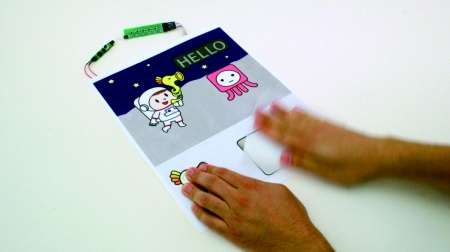 迪士尼研究团队最近研制出这种导电纸张,无需多余的工作,只要随意摩擦、点击书页就能发电哦,电量可以点亮多个LED灯、遥控鼠标等。其原理是在带电的特氟龙材料上下贴合两层导电层,当材料受到挤压或移动(如摩擦起电)时,就能产生电压,让书页变得更加有趣!