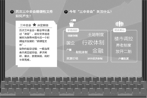 的确,从公报中不难看出,本次三中全会涉及的领域相当广泛,从经济、司法、国家安全,到教育、文化、民生……事关国家发展和人民生活的方方面面,几乎都有涉及。