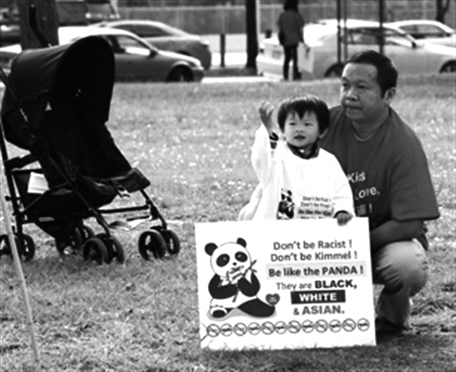 华人尤凌冲(音译)旅美多年,现在是杜克大学的教授,他在抗议现场告诉《洛杉矶时报》,基梅尔和ABC的道歉不真诚。“他们找借口,说那些觉得受到侵犯的人是没有幽默感。”