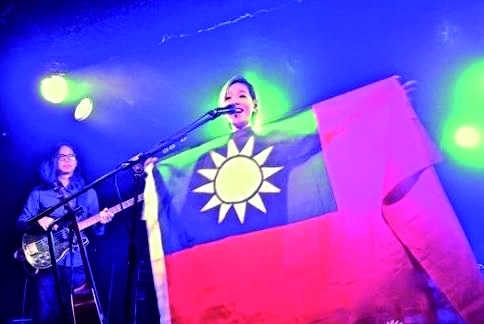 台湾歌手张悬11月2日在英国曼彻斯特小型演唱会上,向台下观众展示青天白日旗,“介绍自己的故乡”。 |
