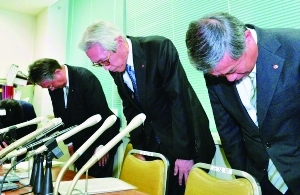 11月5日,日本高岛屋百货公司负责人在新闻发布会上,就食材造假一事向消费者鞠躬致歉。 |