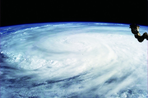 隶属美国航空航天局的宇航员从国际空间站里,拍摄到了“海燕”云团的壮观景象。
