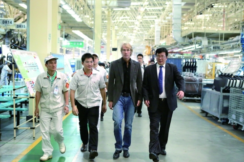 迈克尔·贝与广汽乘用车总经理吴松参观工厂 |