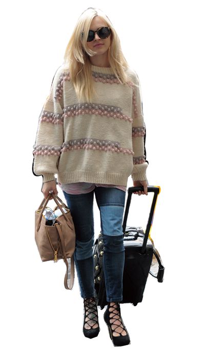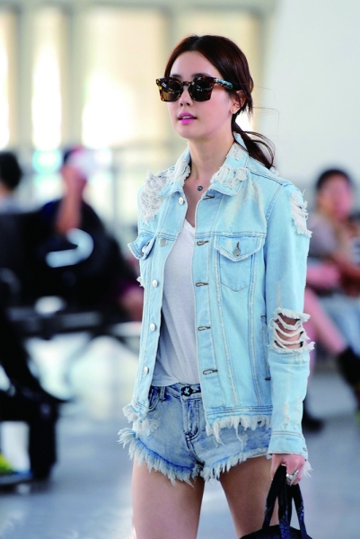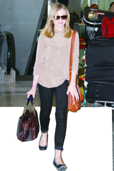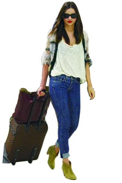 线条优美、质感上乘的牛仔裤是明星机场装扮中最经常出现的单品,近几年风靡时尚圈的Siwy、DL1961、7 for all mankind等品牌获得很多明星的青睐。这些专门制作牛仔裤的品牌精心研究出经典款式,既保证了牛仔裤的塑形能力,又保证了穿着的舒适度。搭乘飞机时,牛仔裤既符合舒适、休闲的原则,又能够展现腿部的线条,精心设计的水洗纹、破洞、铆钉、拉链等装饰,也能展现明星的时尚品位。