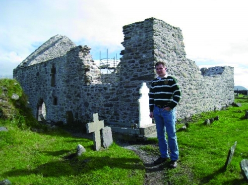 还有一位来自科克郡(属爱尔兰南部芒斯特省)的大学生,穿葵黄色牛仔裤、蓝色漆皮高筒运动鞋,一身时尚打扮,惟独上身不见外套,就一件T恤,冻得发抖。他一路上都在专心阅读一本随身携带的、讲述迈克尔岛的精装书。“在某种程度上,迈克尔岛是我们爱尔兰人身心的一部分。”他说。