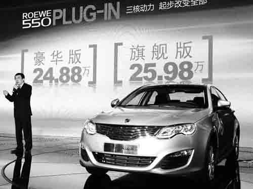 11月21日,上汽乘用车推出旗下首款插电式混合动力轿车——荣威550插电式混合动力轿车,并官方公布价格:豪华版24.88万元,旗舰版25.98万元,该车在享受国家和地方补贴后,豪华版仅为18万元、旗舰版19.48万元。