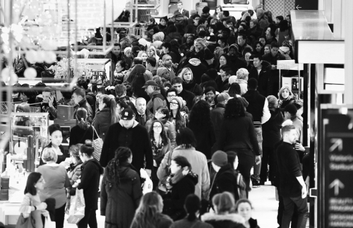 梅西百货CEO伦德格伦则西装革履地站在主要入口前,按照传统迎接顾客。开门的10秒钟倒计时一结束,购物者就尖叫着冲过两重大门、保安人员和媒体的重重包围,潮水般涌进了商场。