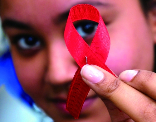 世界艾滋病日当天,印度非政府组织“印度崛起”在班加罗尔举行活动,一名参与该活动的志愿者向人们展示艾滋病红丝带。 |