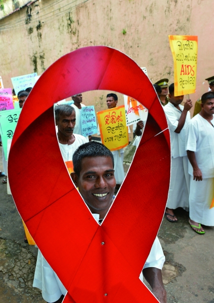 2013年11月1日,斯里兰卡科伦坡某监狱,囚犯举行活动纪念世界艾滋病日。 |