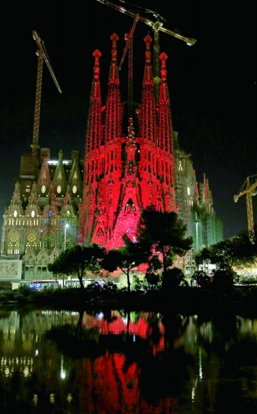 12月1日,西班牙巴塞罗那,为纪念世界艾滋病日,巴塞罗那标志性建筑Sagrada Familia城堡彻夜被红色灯光照亮。 |