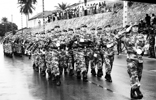 穿着07式军靴的中国援非军人接受检阅 |