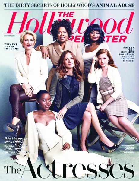 登上最新一期《好莱坞报道》封面的女演员:艾玛·汤普森(后左)、奥普拉·温弗瑞(后中)、奥克塔维亚·斯宾瑟(后右)、露皮塔·尼永奥(前左)、朱莉娅·罗伯茨(前中)、艾米·亚当斯(前右)。 |