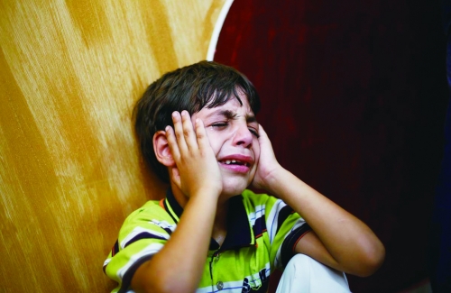 8月11日,一名巴勒斯坦男孩在哭泣。他的父亲被以色列军队打死。 |