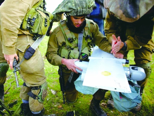 2012年1月16日,以色列士兵在试飞一架无人机。 |