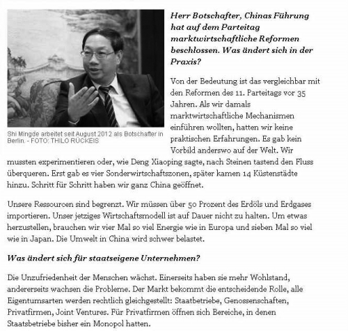 德国媒体刊登了对史明德大使的采访 |