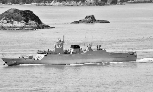 056型还配备了强力的进攻性武器——4枚“鹰击”-83反舰导弹,射程超过124英里,装有350磅高爆炸药。在击中目标前的最后阶段,导弹降至15英尺高度飞行,很难被拦截。另外,舰上还有供直-9直升机起降的停机坪和机库,配备6个反潜鱼雷发射管。